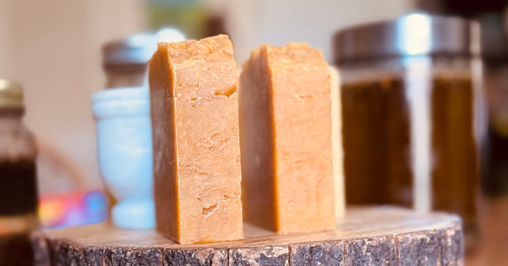 This bar is chock full of turmeric and honey and comes in variety essential oil scents and recipes!!
